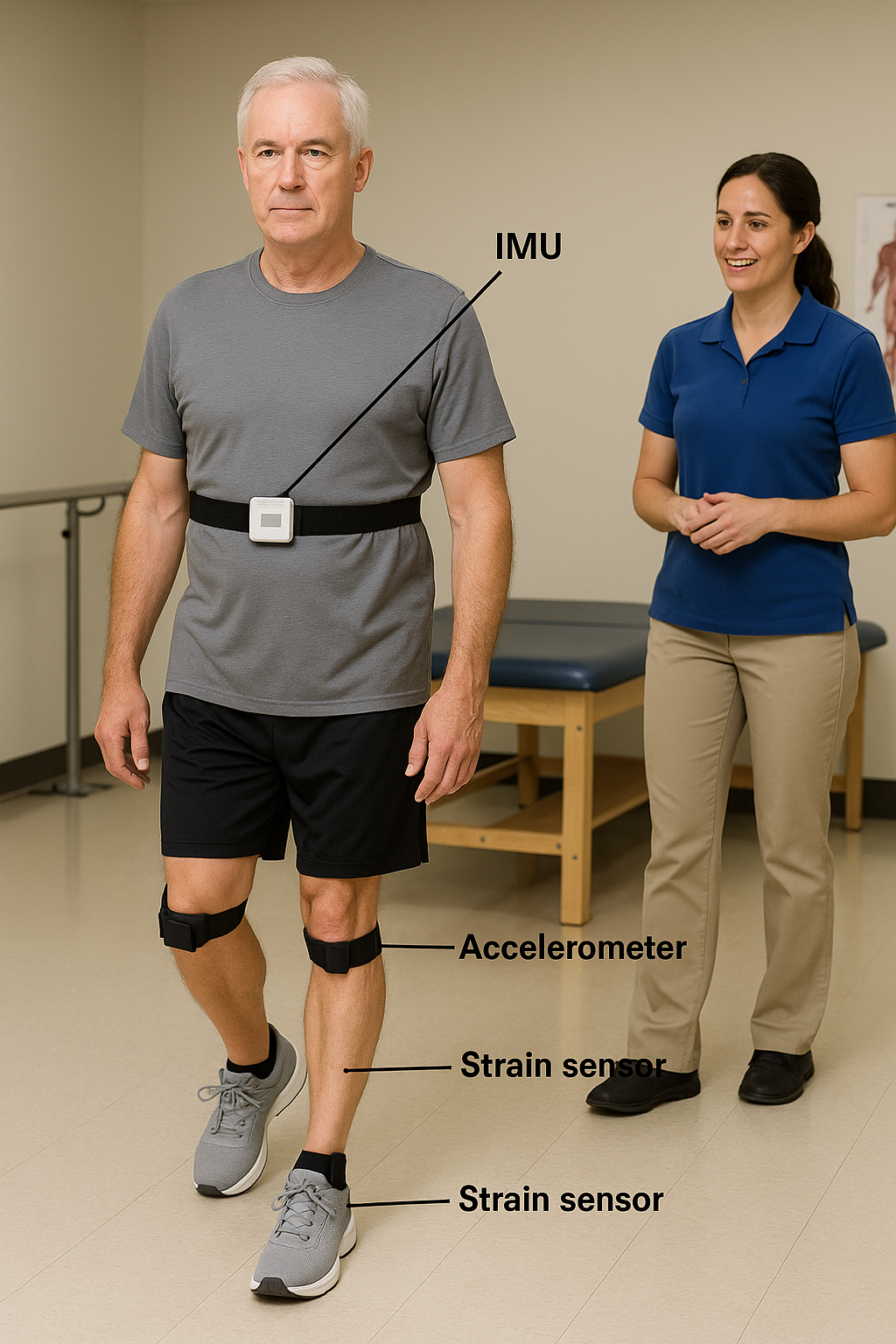 - IMU·가속도계·스트레인 센서를 이용해 걸음걸이, 자세, 균형을 추적합니다.